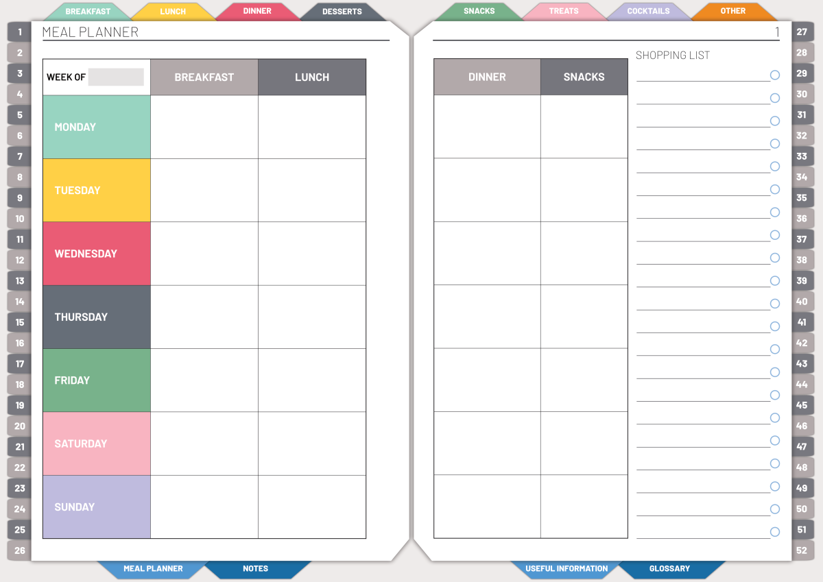 Each of our 52 weekly meal planners includes a shopping list, to help you get exactly what you need.