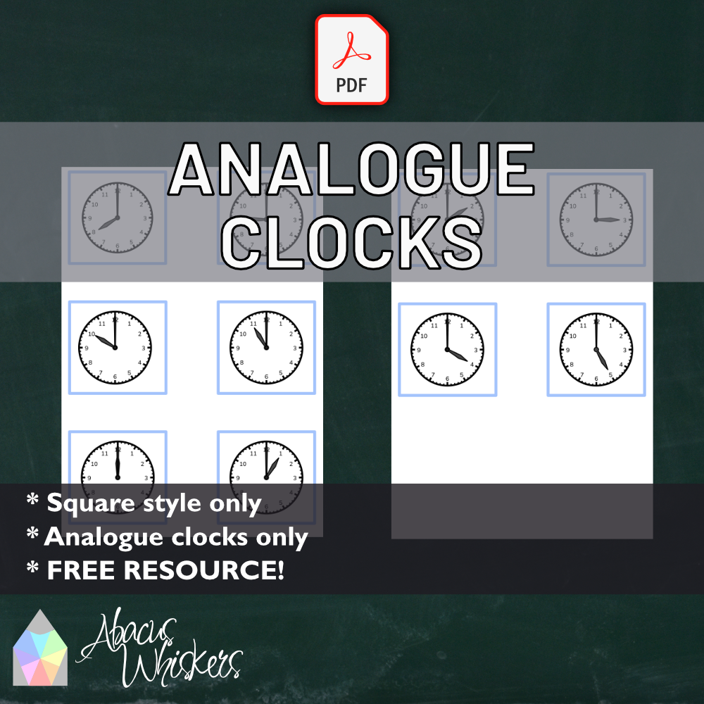 This is a free sample of our clocks printable (the full pack has every 5 minutes from 8am to 5pm in digital and analogue, both PDF and editable in Powerpoint). This version includes analogue only for the hours 8am to 5pm, as a PDF printable.