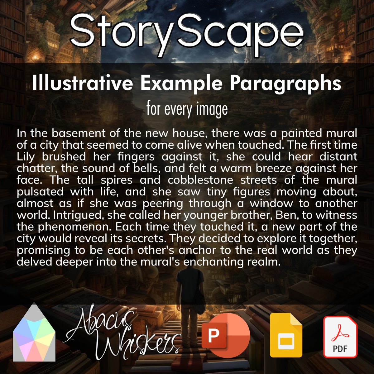 Introducing StoryScape, an innovative collection of visually captivating images paired with imaginative story starters designed for students from grade 2 upwards – featuring over 260 pages.